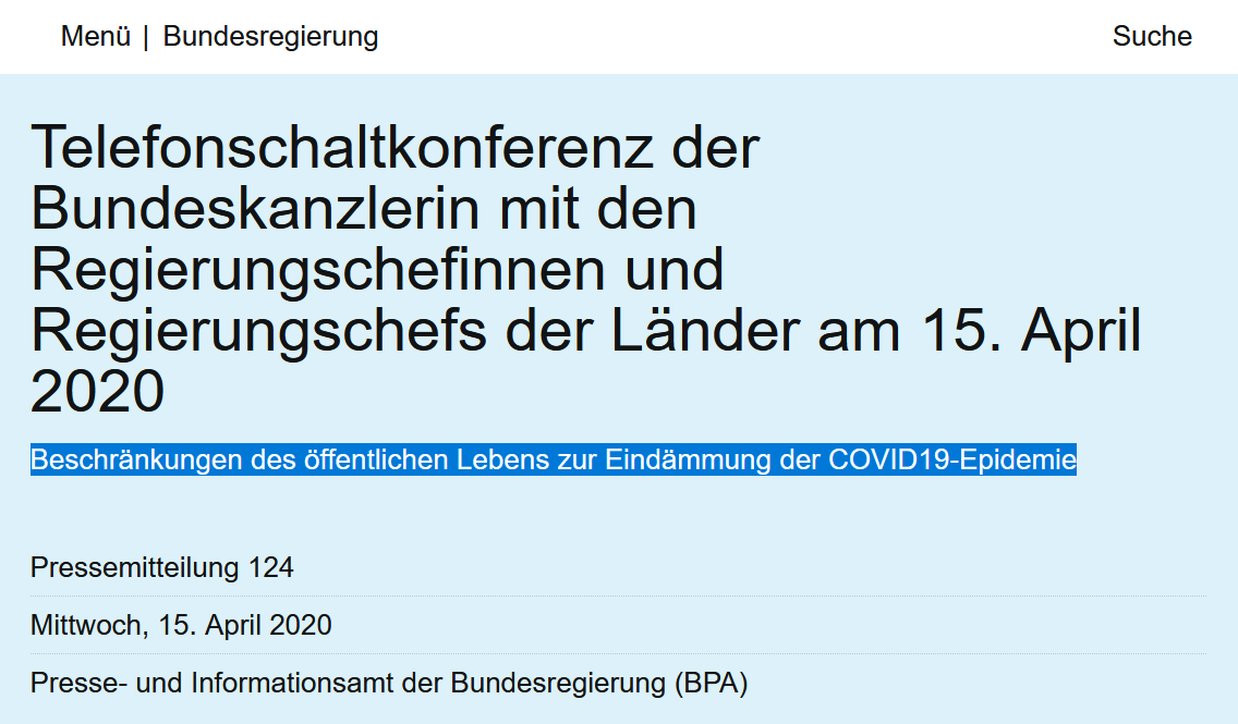 Die Bundesregierung veröffentlichte dann am 15. April 2020, also nur drei Wochen nach den Warnungen vor den Fake News, die Ergebnisse ihrer Beratungen der letzten Tage: