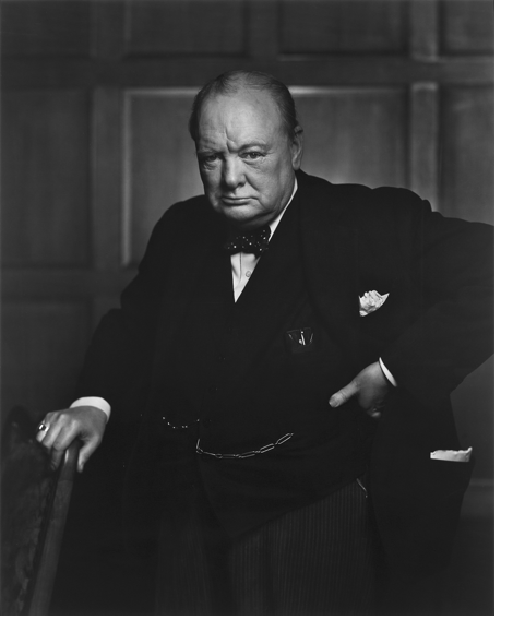 Sir Winston Leonard Spencer-Churchill (1874-1965) britischer Staatsmann, zweimaliger Premierminister (von 1940 bis 1945 und von 1951 bis 1955), sowie Großbritanniens Innenministers, Ersten Lords der Admiralität und Schatzkanzler, Autor politischer und historischer Werke und er erhielt 1953 den Nobelpreis für Literatur. KG OM CH PCc RA